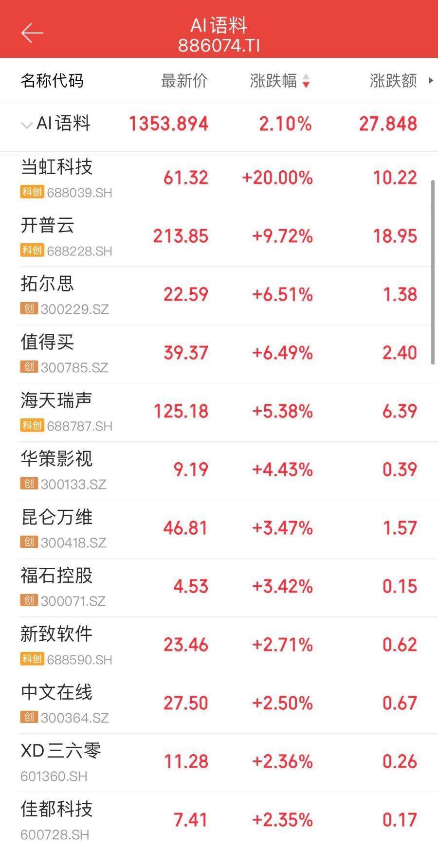 9月30日早盘在线炒股配资平台,AI相关概念股集体拉升。AI语料方向,当虹科技20CM涨停,开普云、拓尔思、值得买等涨超5%;半导体硬件方向,德明利涨停,江波龙、联芸科技等涨超5%,寒武纪、东芯股份等跟涨。
