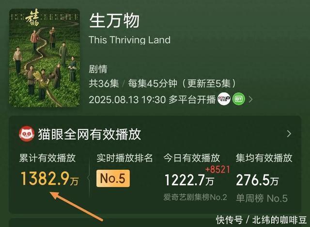 电视剧《生万物》首播热度达到了7000,可以说是直接爆开了。 不仅如此,收视率直接破2,播放量已经破千万,“戏混子”杨幂这次终于口碑逆转了。